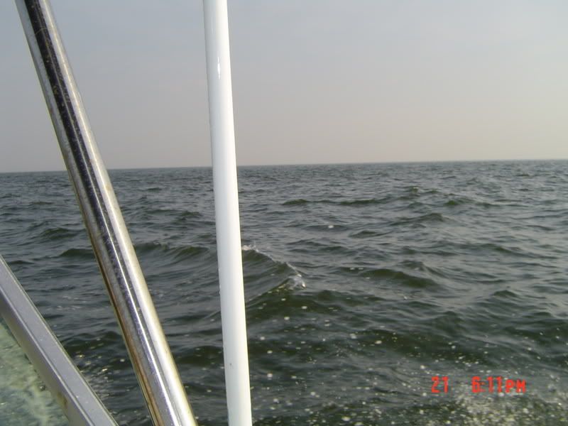 Out in the shipping channel. Pictures just dont show it, but it was nasty out there.