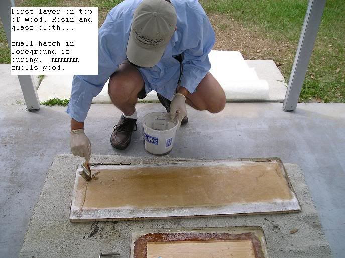 I got busy at my real job and was sidetracked, but finally finished. Thanks to Franco for giving me the ambition and confidence to Get-R-Done. And Clamc for stopping by for his expert advice and final push which gave me a second wind at the end. Here are some pics of project. *Hatches are now the toughest part of my boat and am confident that an elephant (okay maybe a baby elephant) could stand on these hatches with no damage. Was quoted $600-800 for this repair, I did it all for $110-$120 + time. * ![]() ![]() ![]() ![]() ![]() ![]() Cleaning up with mineral spirits. ![]() ![]() ![]() ![]() ![]() ![]() ![]() Thanks again. Steel |